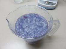 アントシアニン液につけた和紙にレモンで絵を描く、というもの。