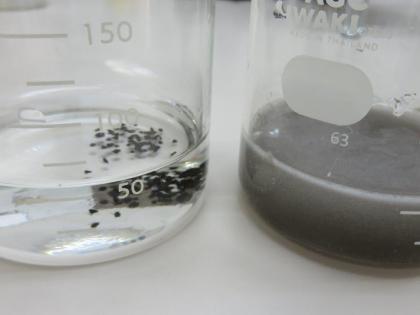「二酸化マンガン」という黒い粒を「水」と「過酸化水素水」にそれぞれ加えると…。