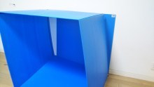 プラスチックダンボールのサイズを調べ、折り畳み式コンテナをもとに設計図を書いて、